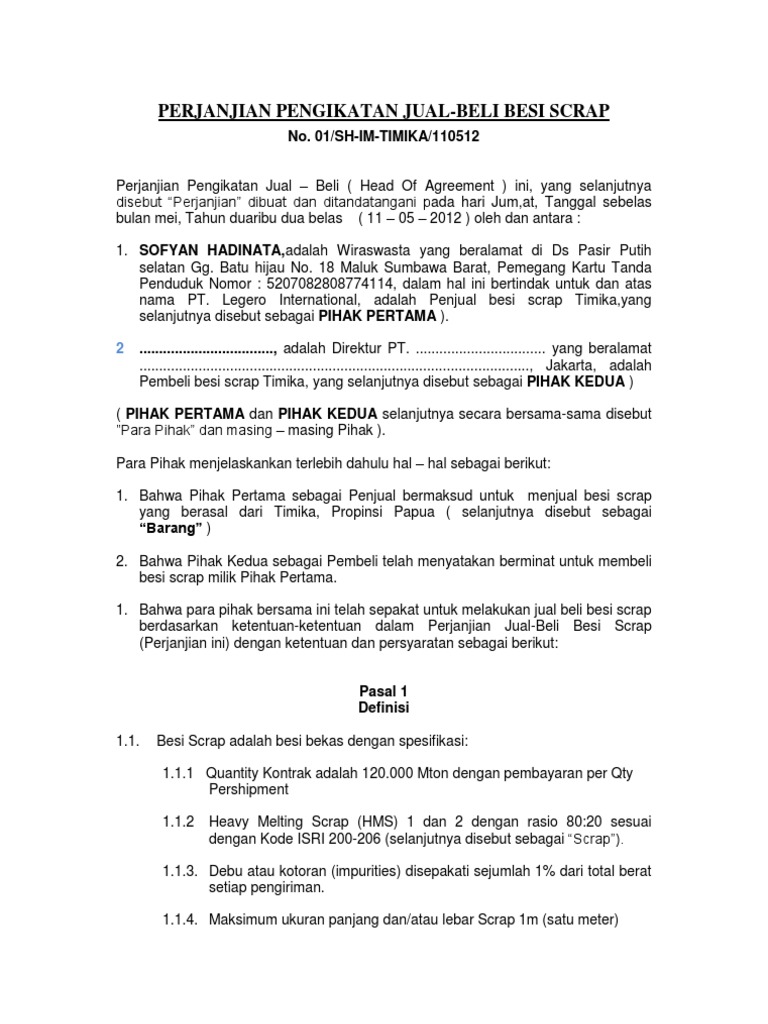 Pdf Perjanjian Jual Beli Limbah Besi Tua Scrap Wira Kusuma Academia Edu